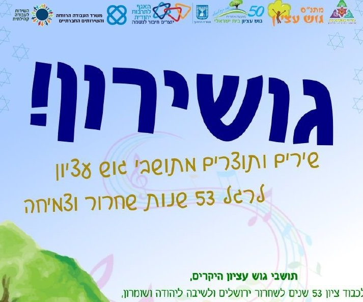 לרגל יום השחרור ה53 לגוש עציון, הפקנו משחק חידון ומשימות בנושאים שונים הקשורים לגוש עציון בליווי סרטונים מאושיות שונות במועצה. מכל התוצרים הפקנו שירון ייחודי מכלל המשתתפים בליווי תמונות של התוצרים השונים בחידון!