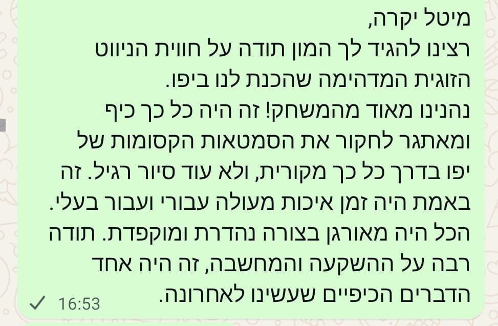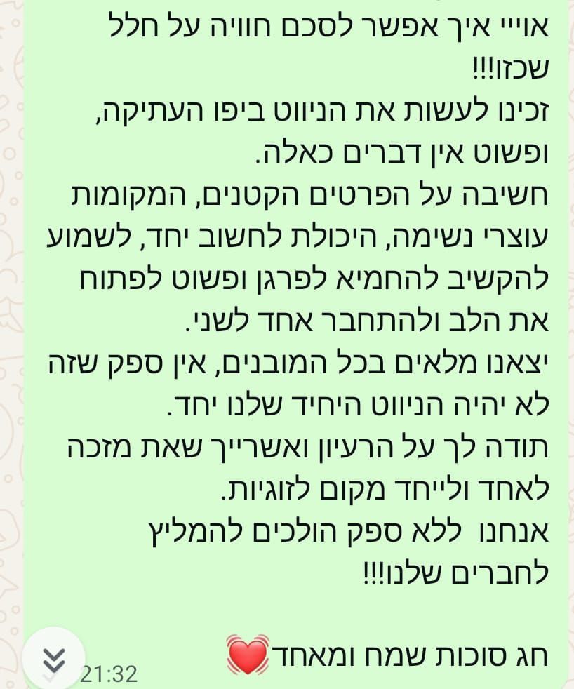 תודה ענקית על חוויה זוגית מפנקת ומשמחת
