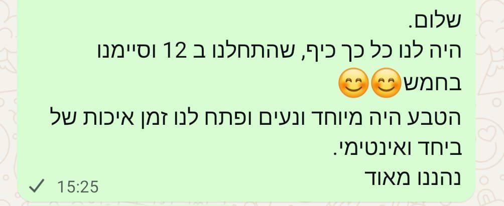 אנחנו נהיה זמינים לכל שאלה, אבל בשטח- רק אתם ללא הפרעות!. זמן איכות זוגי אמתי.